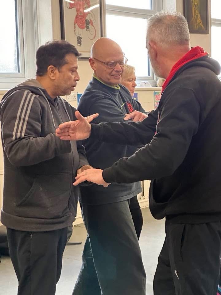 It can also go from hands to feet to stop the opponent being able to lock joints or hold on to unbalance us. Good qigong style exercises help to connect, loosen and coordinate their movement.