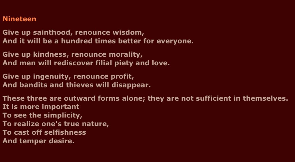 Once we can see our true nature, the simplicity of the way becomes apparent and we lose the selfish desire to be judged as good, wise and successful by those around us.