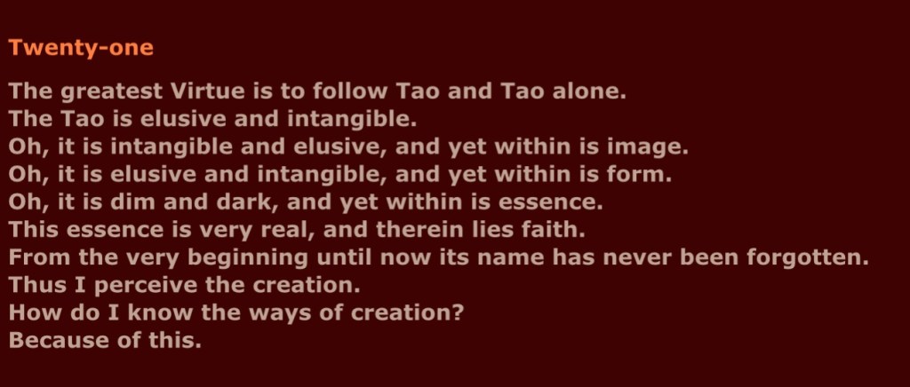 “The greatest Virtue is to follow Tao and Tao alone.”