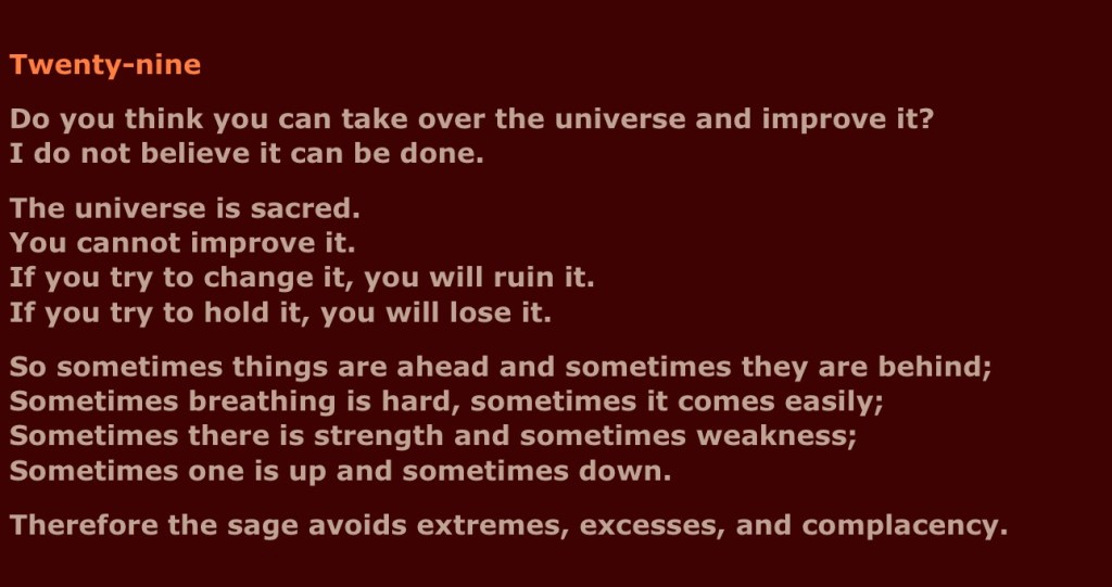 Explanation Of Tao Tao Ching Part Twenty Nine