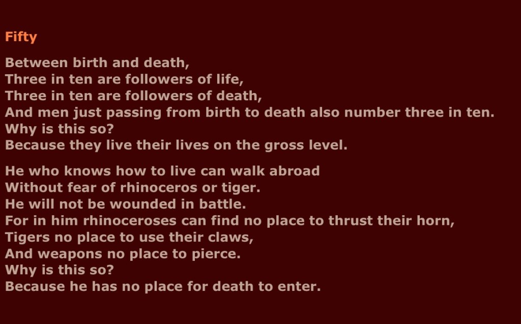Explanation Of the Tao Te Ching Part Fifty