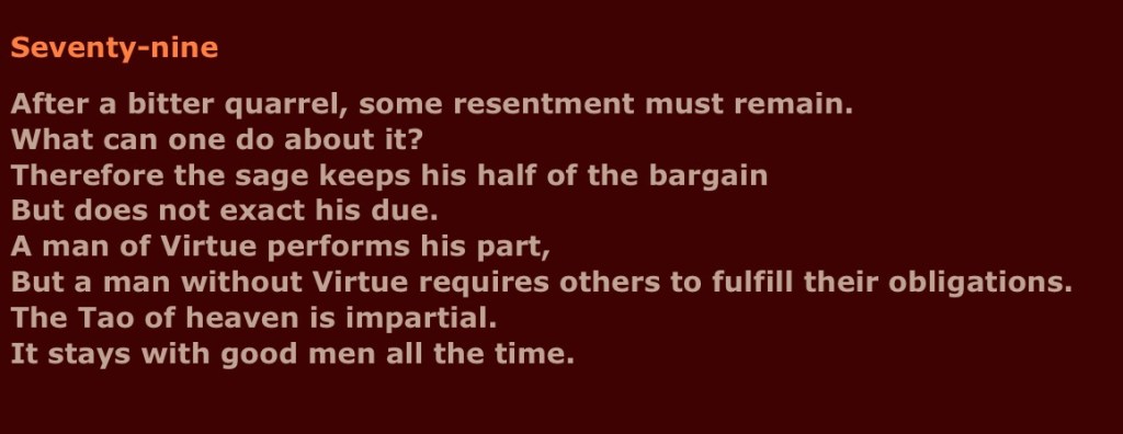 Explanation Of The Tao Te Ching Part Seventy Nine