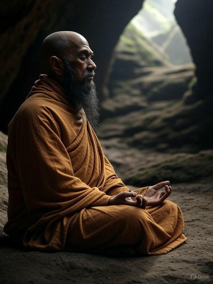 I found myself naturally drawing the line with my hands in front of the body and that drew a mental image of the shape of Daruma meditating in the cave. (I wish I could draw, AI can’t make the shape I wanted).